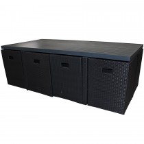 Ce salon de jardin existe en plusieurs déclinaisons : 4 places (1 table + 4 fauteuils) et 10 places (1 table + 6 fauteuils + 4 poufs).
