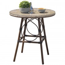 Avec son style authentique et naturel cette petite table ronde DCB GARDEN USHUAIA avec plateau en verre d'un diamètre de 70cm est idéale pour recevoir 2 personnes autour.